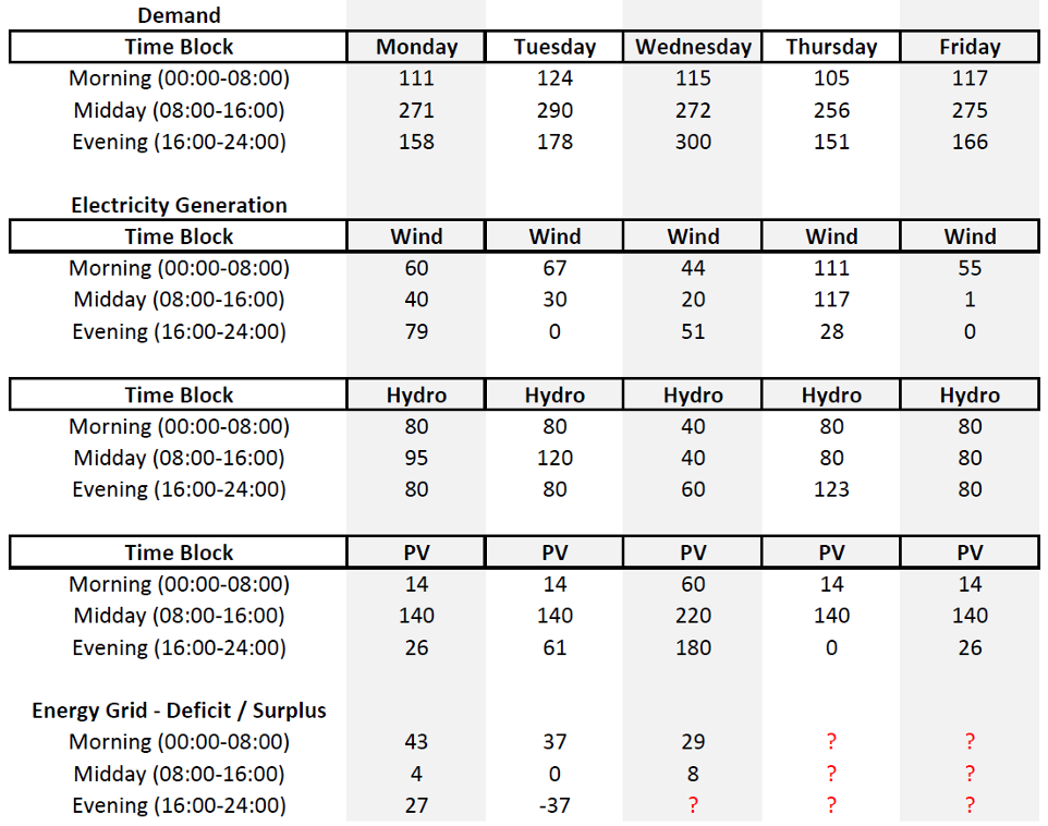 - What should the city do to balance electricity generation and demand for Thursday and Friday?